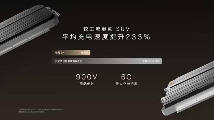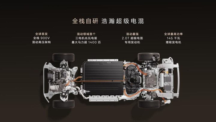 豪华车市场的核心竞争力始终建立在动力技术的代际优势上,极氪9X的破局第一步,便是以浩瀚超级电混重构了新能源动力的底层逻辑。长期以来,纯电的补能焦虑与混动的性能妥协形成行业困局:蔚来的换电基建成本高企,理想的纯电探索遇阻,传统混动车型则深陷"亏电乏力"的魔咒。极氪给出的解决方案,是全球首个全栈900V高压混动架构的量产落地。